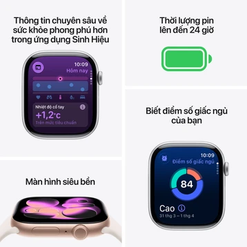 Apple Watch S11 LTE tiếp tục phát huy thế mạnh về theo dõi sức khỏe: đo nhịp tim, SpO2, giấc ngủ, mức độ căng thẳng và đặc biệt là các chỉ số vận động hằng ngày. Đặc biệt với khả năng phát hiện té ngã, phát hiện tai nạn xe (Crash Detection), gọi khẩn cấp SOS quốc tế ngay cả khi iPhone không ở gần.