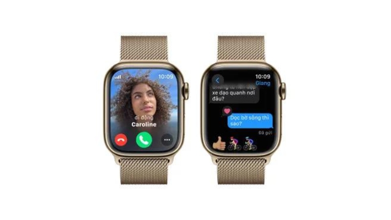 Apple Watch Series 9 LTE Viền thép được hỗ trợ eSIM riêng. Nhờ vậy mà bạn có thể duy trì kết nối dữ liệu hoặc thực hiện cuộc gọi trực tiếp trên Apple Watch 9 mà không còn phải phụ thuộc vào smartphone như các phiên bản trước đó nữa.