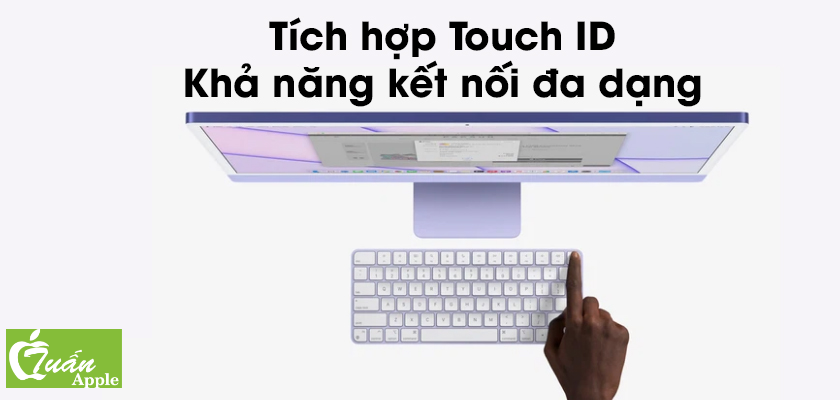 iMac 2021 được Apple tích hợp Touch ID trên bàn phím Magic Keyboard mang đến độ bảo mật cao cũng như sự tiện lợi trong quá trình sử dụng. Bên cạnh đó, rất nhiều phụ kiện bàn phím như Magic Keyboard hay Magic Mouse hay là Magic Trackpad với nhiều màu sắc tương tự như dòng iMac mới này để mang đến sự đồng bộ cho người dùng.