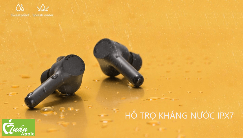 Ngoài ra, tai nghe được trang bị công nghệ kháng nước – bụi bẩn IPX7 giúp bảo vệ tai nghe trong trời mưa nhẹ và mồ hôi trong quá trình tập thể dục.