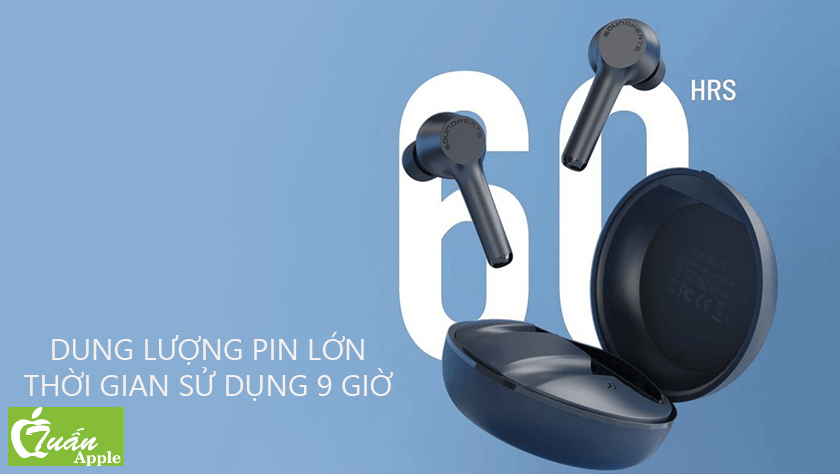 Pin khủng lên đến 9 giờ sử dụng,60 giờ khi đi kèm với hộp sạc.Sạc đầy pin trong 1.5 giờ